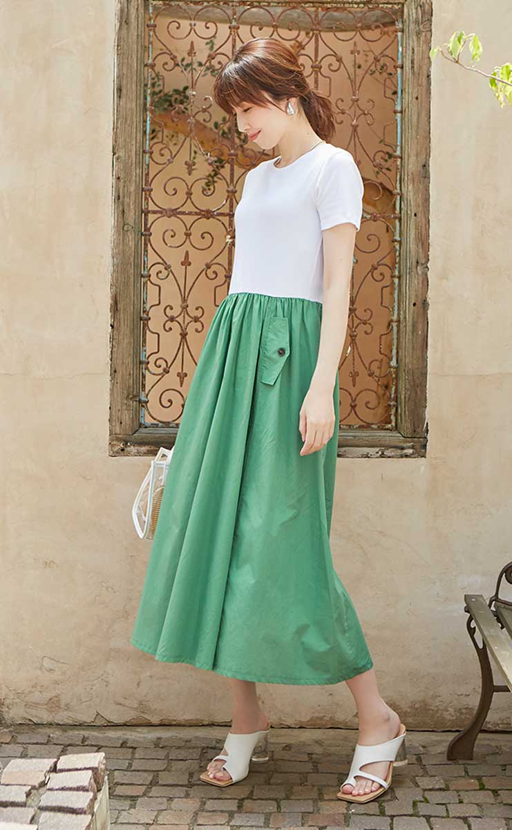 40代にもぴったり!ミモレ丈の揺れるスカートで夏を演出
