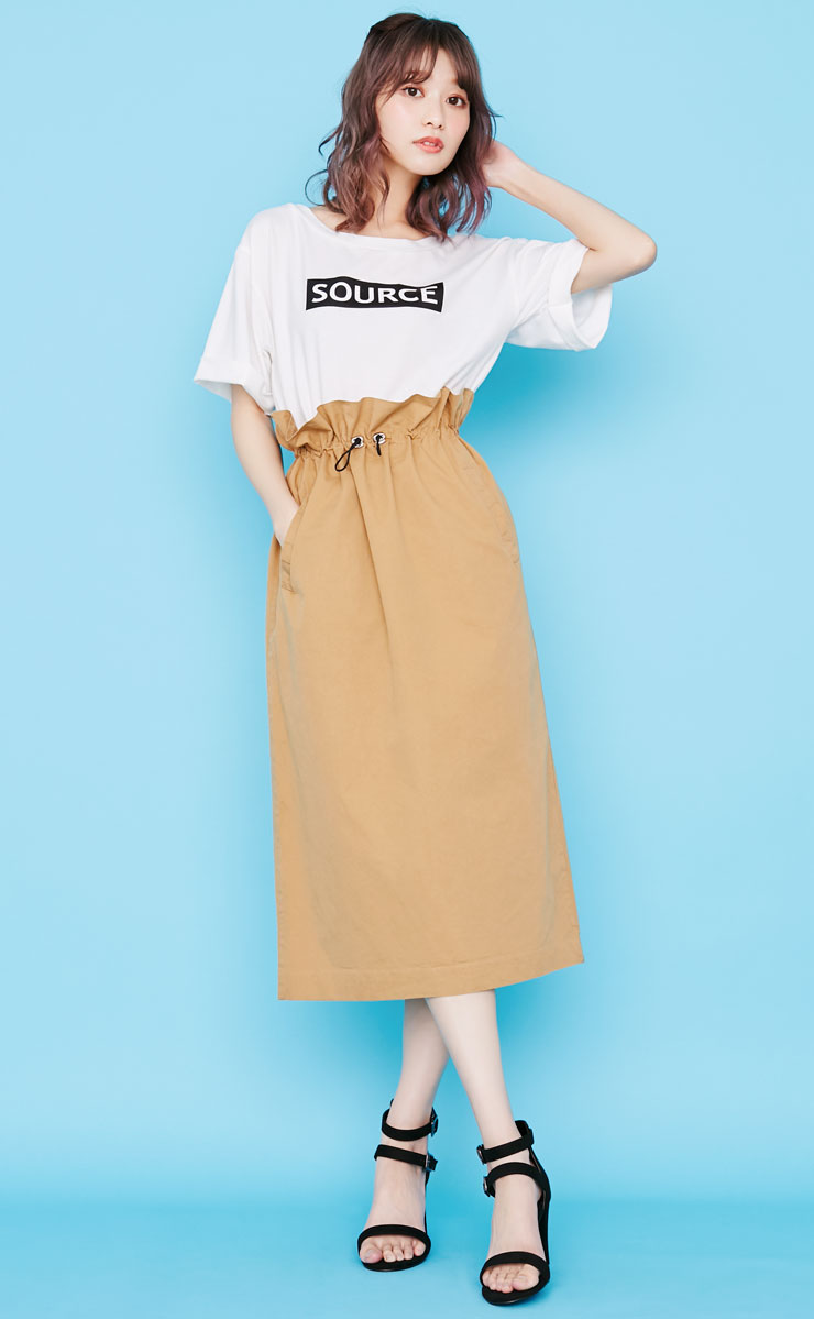 ☆ホワイトのロゴTシャツ×ベージュのミモレ丈タイトスカート☆